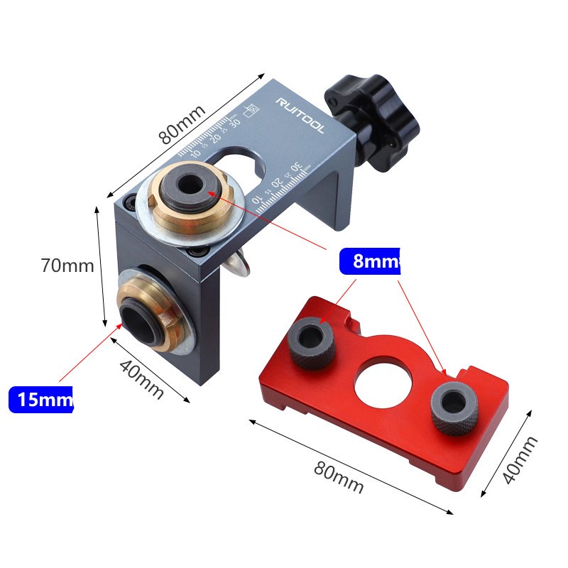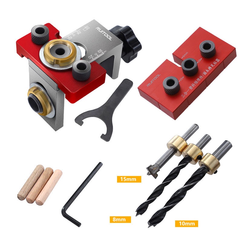 三合一木榫定位器 三合一直孔打孔定位器 開孔工具 木訂定位器 打孔定位器 圓木榫定位工具 黃銅限位