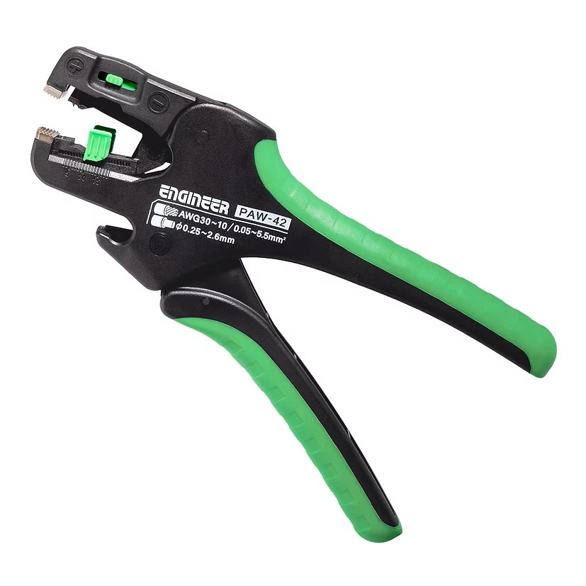 能以單一動作快速剝除多種尺寸電線的自動剝線器。