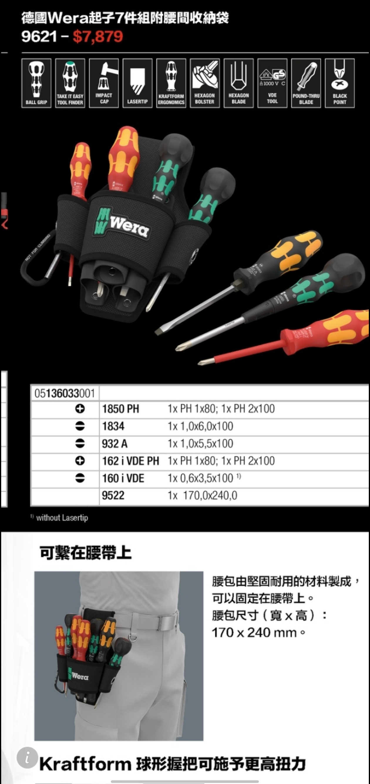 德國 Wera 起子7件組附腰間收納袋 9621